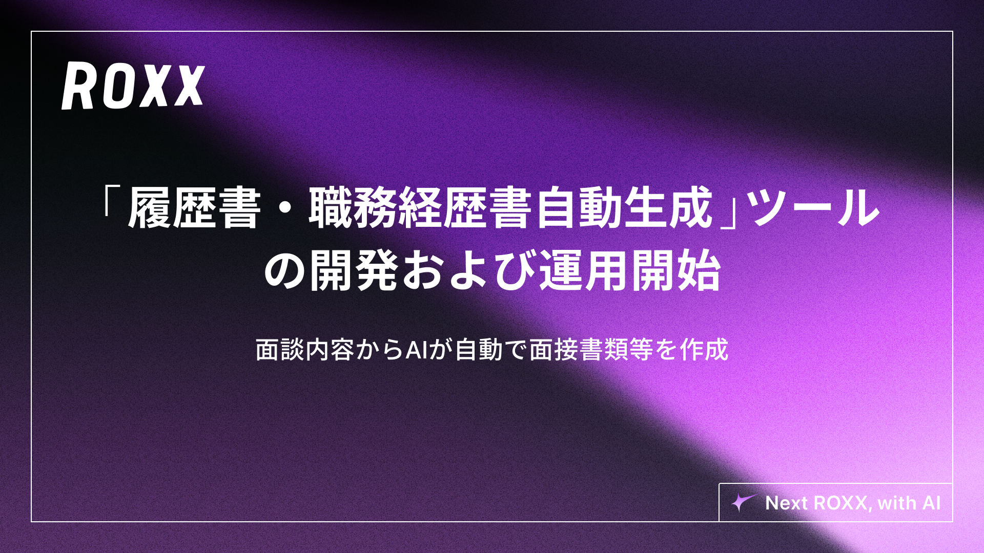 【ROXX】面談内容からAIが自動で面接書類等を作成する 「履歴書・職務経歴書自動生成」ツールの開発および運用開始に関するお知らせ